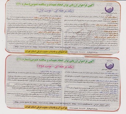 10-هزینه درج آگهی هر دو نوبت به عهده برنده مناقصه می باشد .