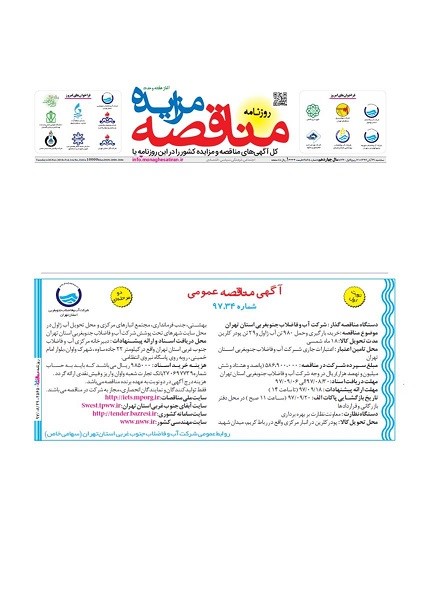 برونسپاری ارائه خدمات امداد، نگهداری و تعمیرات ، انجام خدمات پیشگیرانه شبکه های توزیع آب ، چاهها و مخازن آب و حراست فیزیکی از تاسیسات شهرستان کبودراهنگ