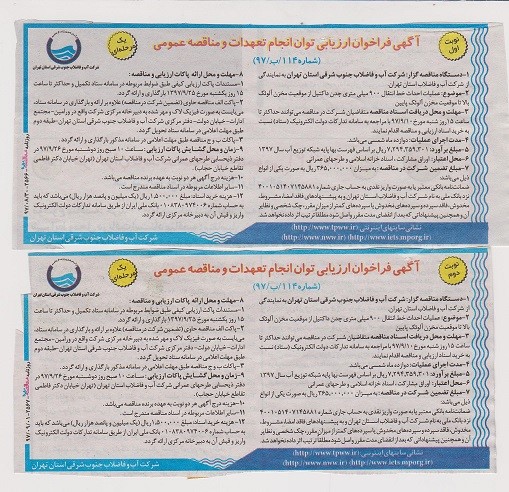 آگهی فراخوان ارزیابی توان انجام تعهدات و مناقصه عمومی(شماره114/ب/97)