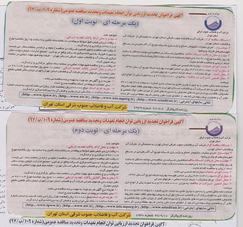 آگهی فراخوان تجدید ارزیابی توان انجام تعهدات وتجدید مناقصه عمومی(شماره 109/ب/97)
