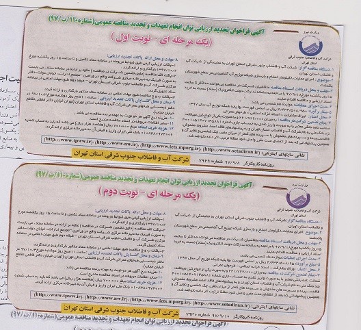 آگهی فراخوان تجدید ارزیابی توان انجام تعهدات و تجدید مناقصه عمومی(شماره110/ب/97)