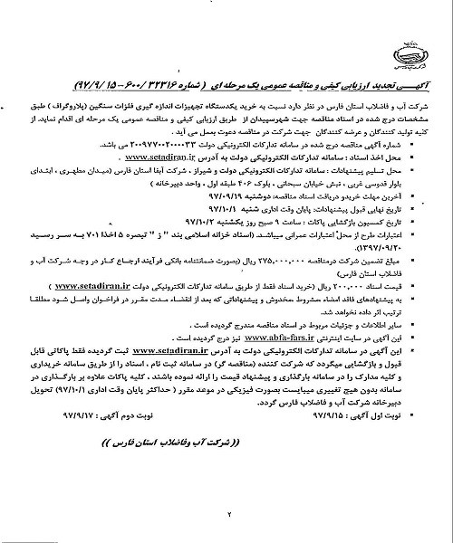 گروه مناقصات شرکت آبفای فارس