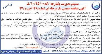 برونسپاری ارائه خدمات امداد، نگهداری و تعمیرات ، انجام خدمات پیشگیرانه شبکه های توزیع آب ، چاهها و مخازن آب و حراست فیزیکی از تاسیسات شهرستان کبودراهنگ