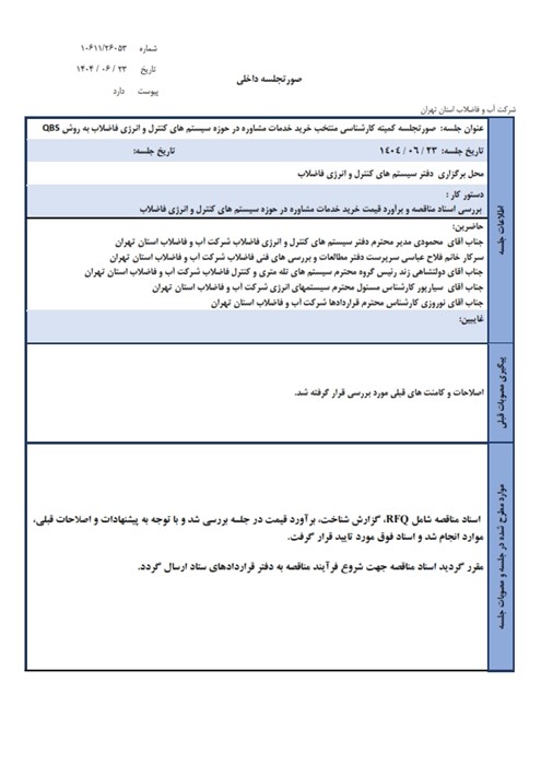 انجام خدمات مشاوره در زمینه مطالعات، خدمات مهندسی، تهیه اسناد مناقصه در حوزه سیستمهای کنترل، اسکادا و انرژی فاضلاب