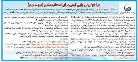 فراخوان ارزیابی کیفی برای انتخاب مشاور