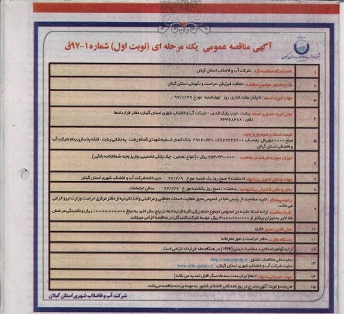 سایت ملی مناقصات کشور: http://iets.mporg.ir سایت شرکت آب و فاضلاب شهری استان گیلان: www.abfa-guilan.ir |