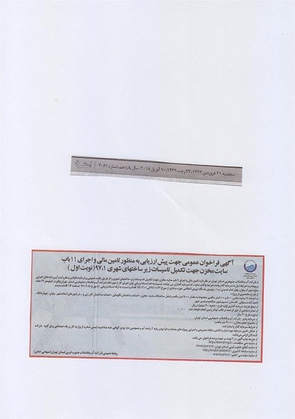 ارزیابی به منظور تامین مالی و اجرای 11 باب مخزن جهت تکمیل تاسیسات زیر ساخت شهری